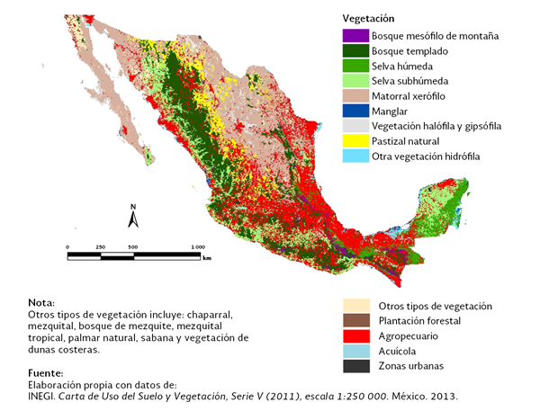 Figura 2.1.1 Vegetación natural y uso del suelo en México, 2011 |