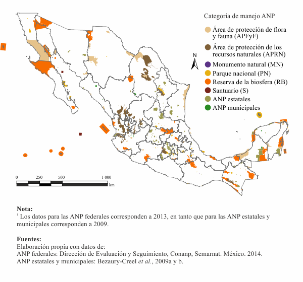 Figura 4.5.2 Áreas naturales protegidas por categoría de manejo en México, 2013 |